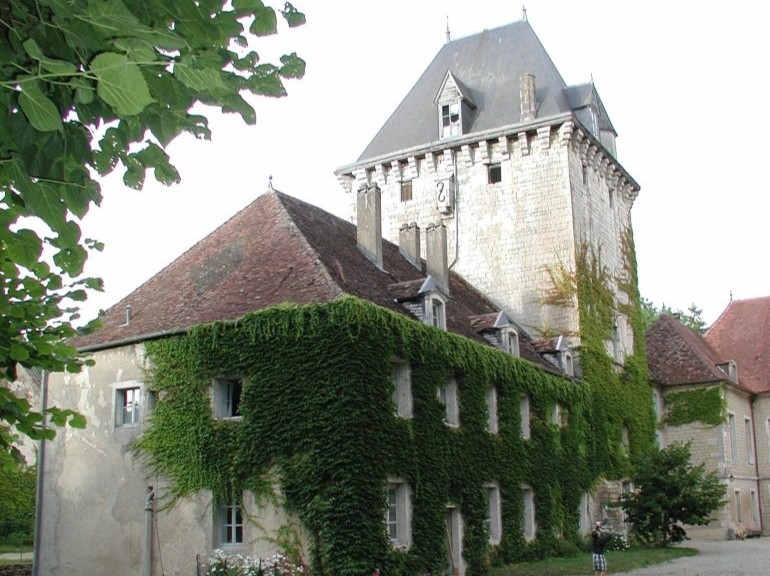 A little further on, between two branches of the Ignon, stands the 15th-century fortified castle. Its imposing square keep, adorned with machicolations, was rebuilt in the 17th and 18th centuries.