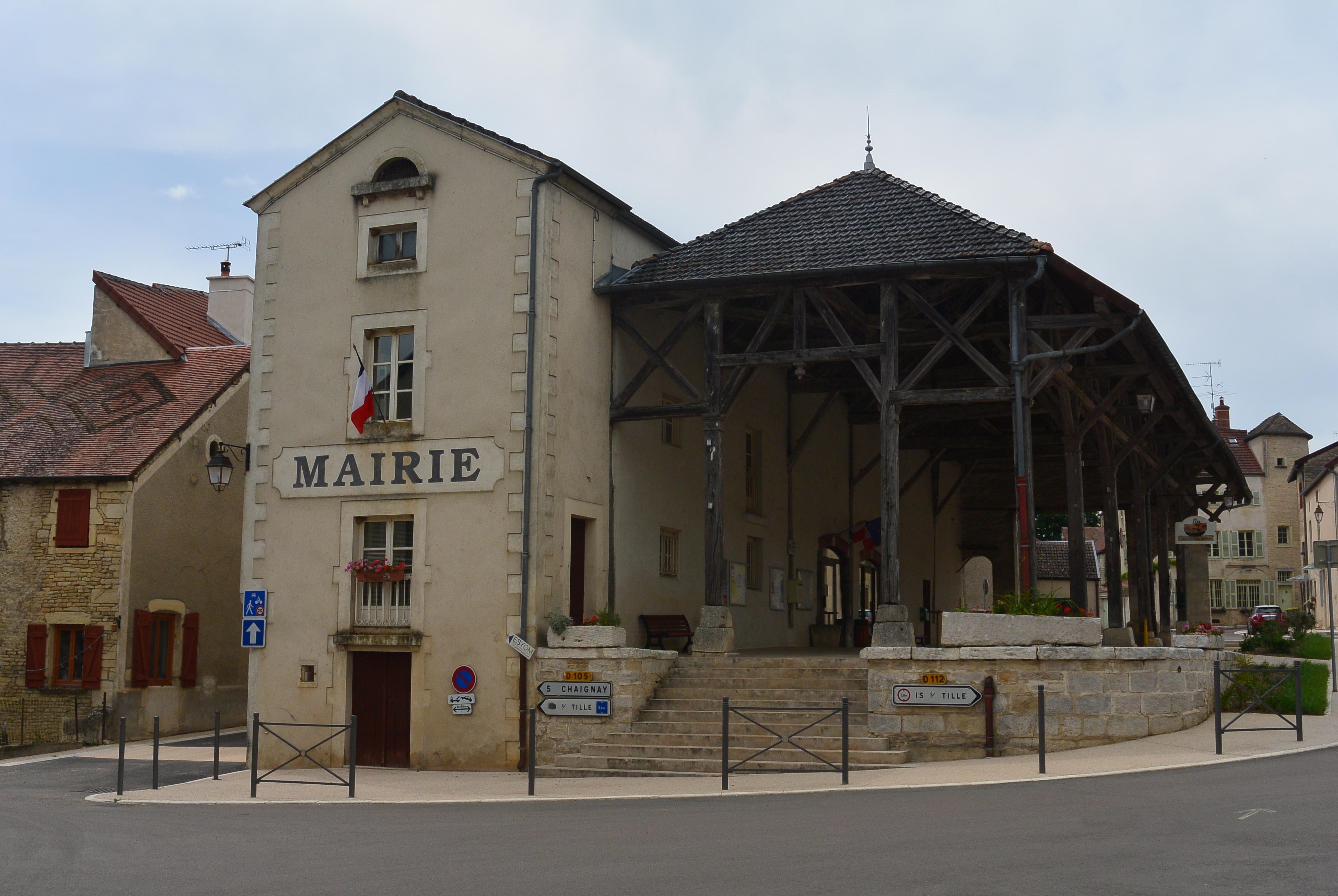 The market hall dating from the 15th C was built by the Sire of Neufchastel (Lord of Gemeaux). Now it’s the town hall and a place for a small store.