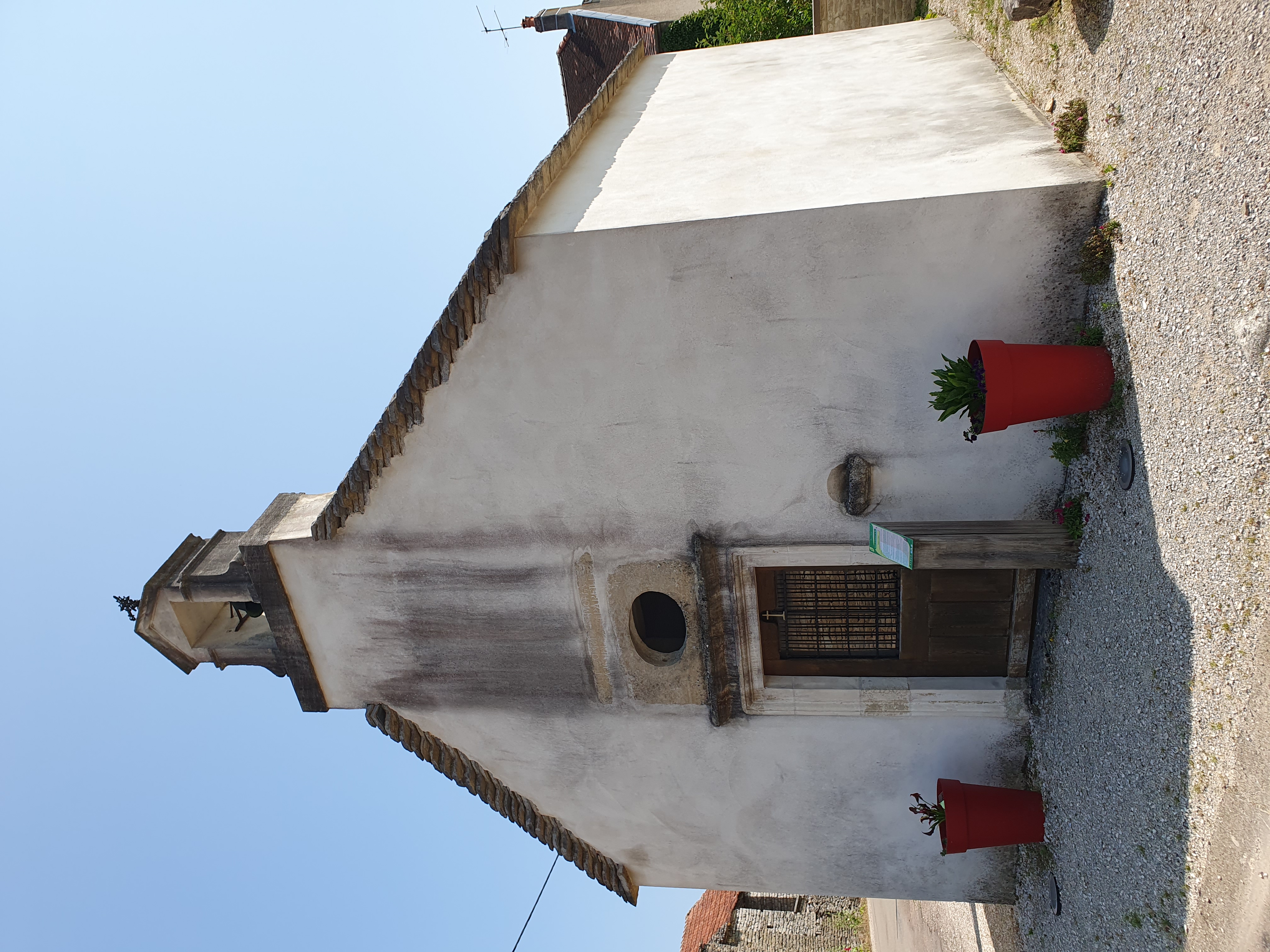 Au sommet de la porte d'entrée est gravée l'inscription suivante qui rappelle à qui fut dédié ce modeste sanctuaire : " Passant considère mon affliction voie si elle a sa pareille".