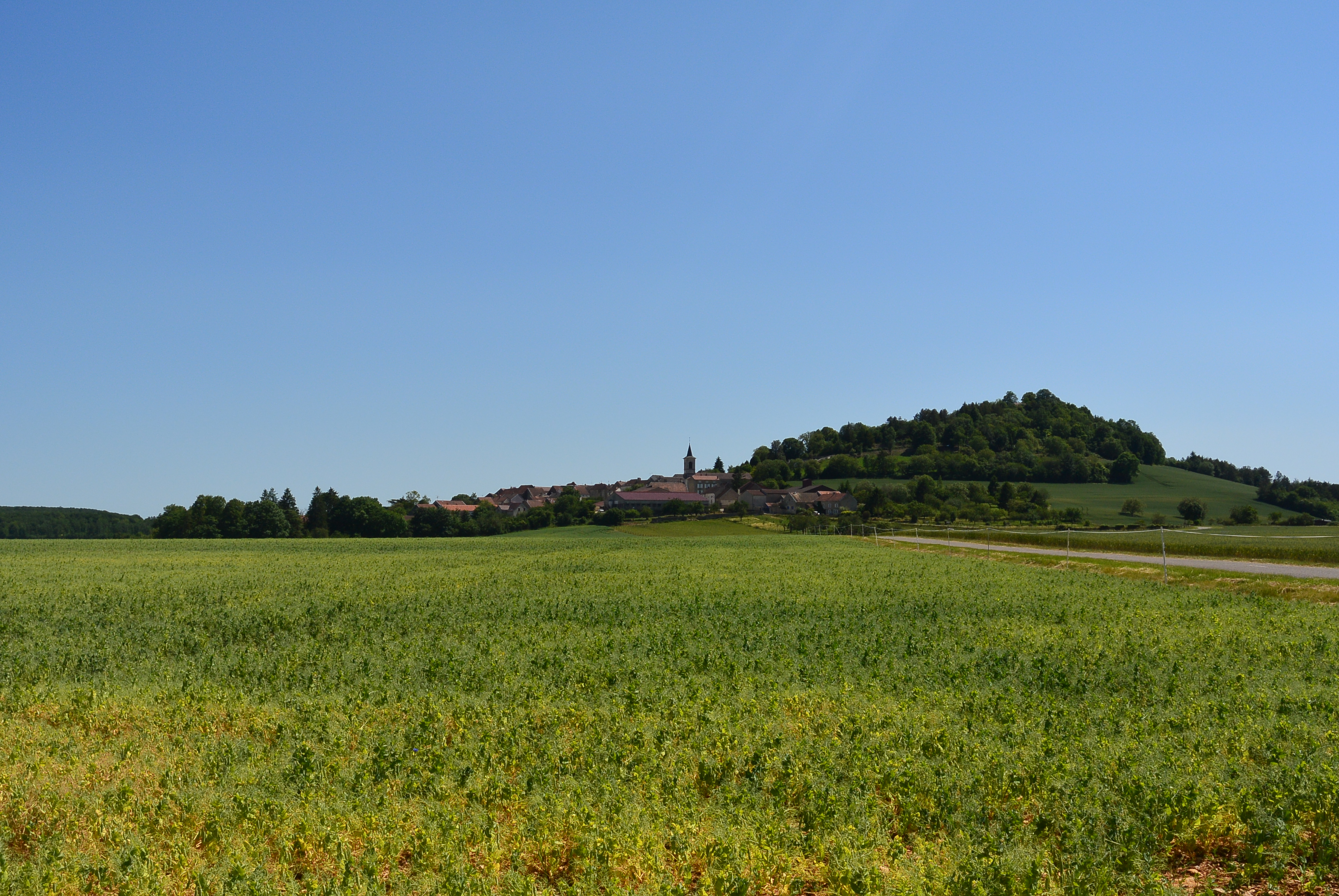 Au sommet de cette butte se situe la chapelle Saint-Siméon. Saint-Siméon le Stylite est le saint patron du village. Sa statue est orientée en direction de la Prusse afin de protéger le village des invasions allemandes. Autrefois, cette statue se trouvait à l'intérieur de la chapelle et elle fut sortie entre les deux guerres. En contrebas, se trouve un vaste clos qui a été aplani, c'est là que se trouvait l'essentiel du château, dont il ne reste rien aujourd'hui. Deux murs naturels de roches sont situés plus bas. C'est l'ancienne porte qui donnait accès à l'enceinte de fortification de la plate-forme. On distingue encore la base cylindrique de la tour des gardes. Au sommet de cette butte se situe la chapelle Saint-Siméon. On ne sait pas si elle fut épargnée lors de la destruction de 1602 ou reconstruite entre 1602 et 1750. Cette chapelle tombera en ruine et sera restaurée en novembre 2001 par la commune. ____________________________________________________________________________________________________________________________________________