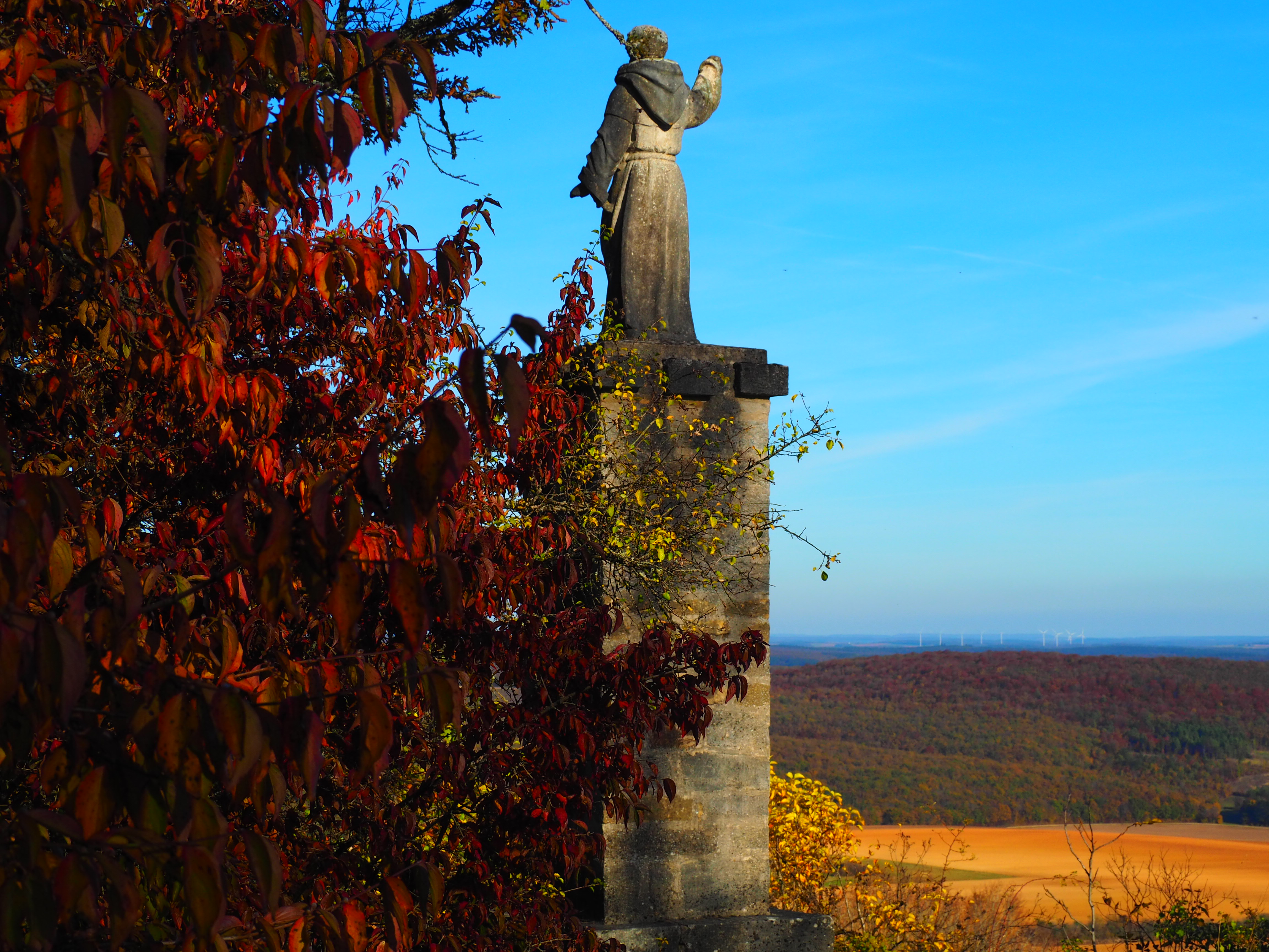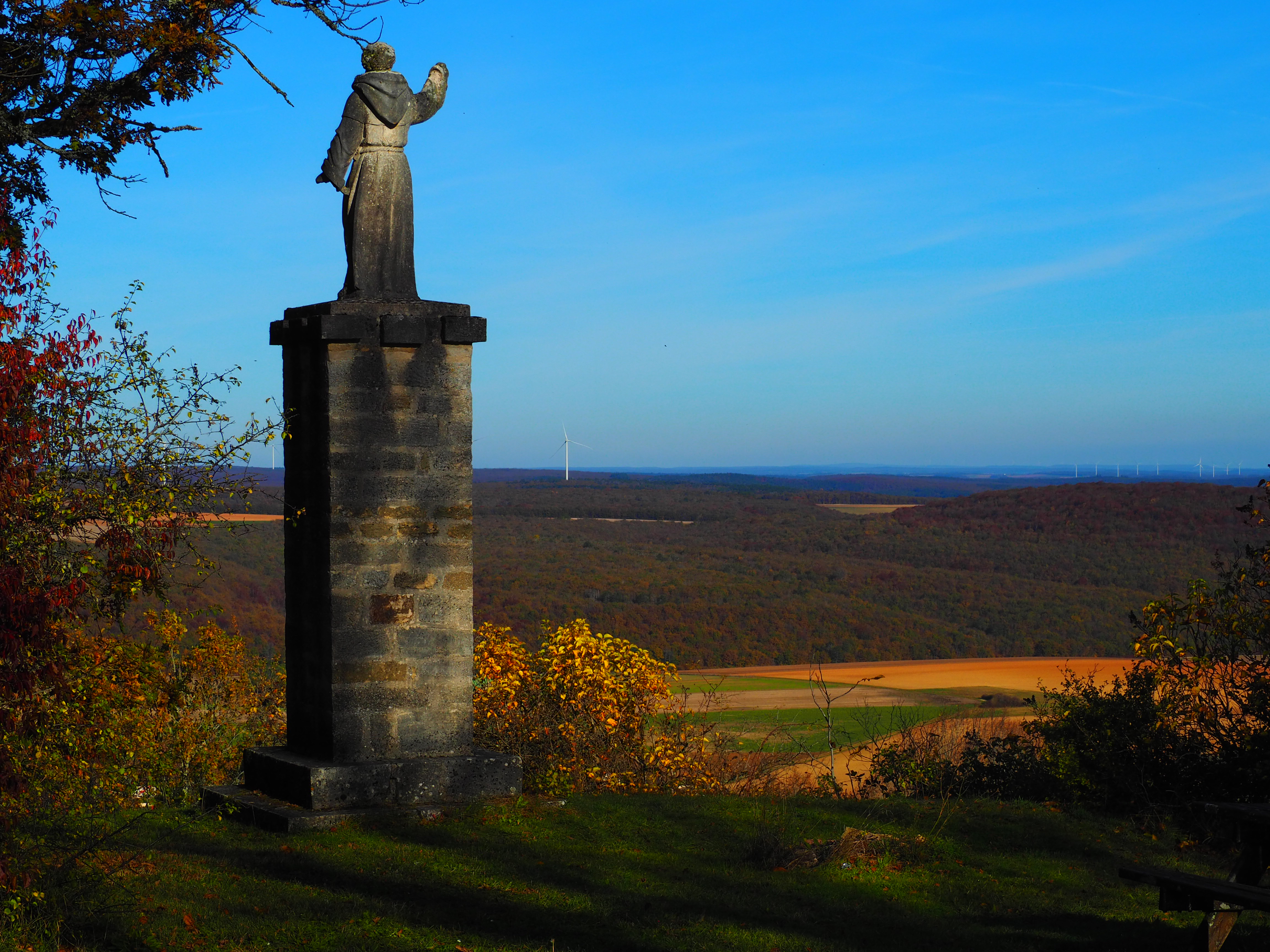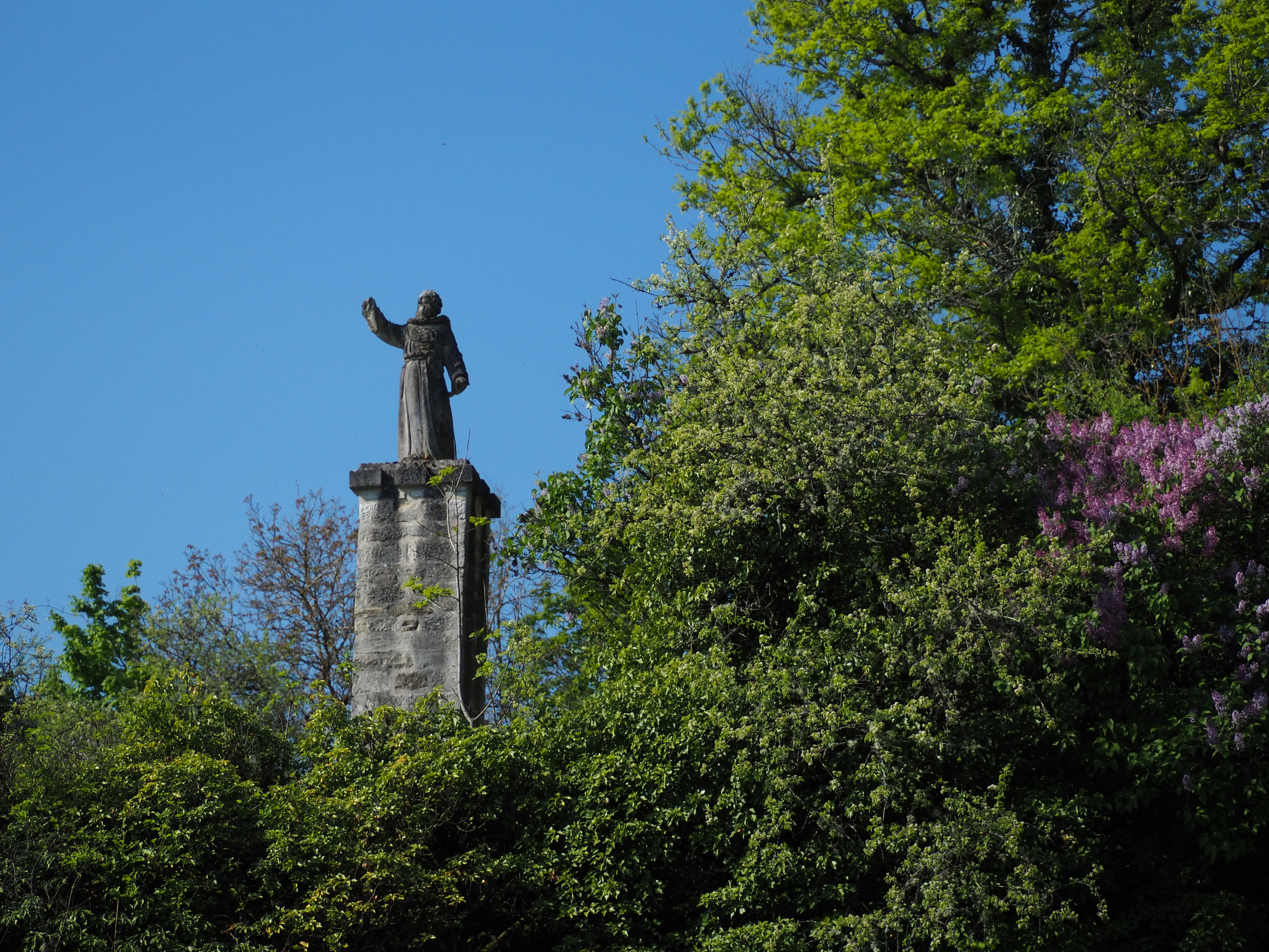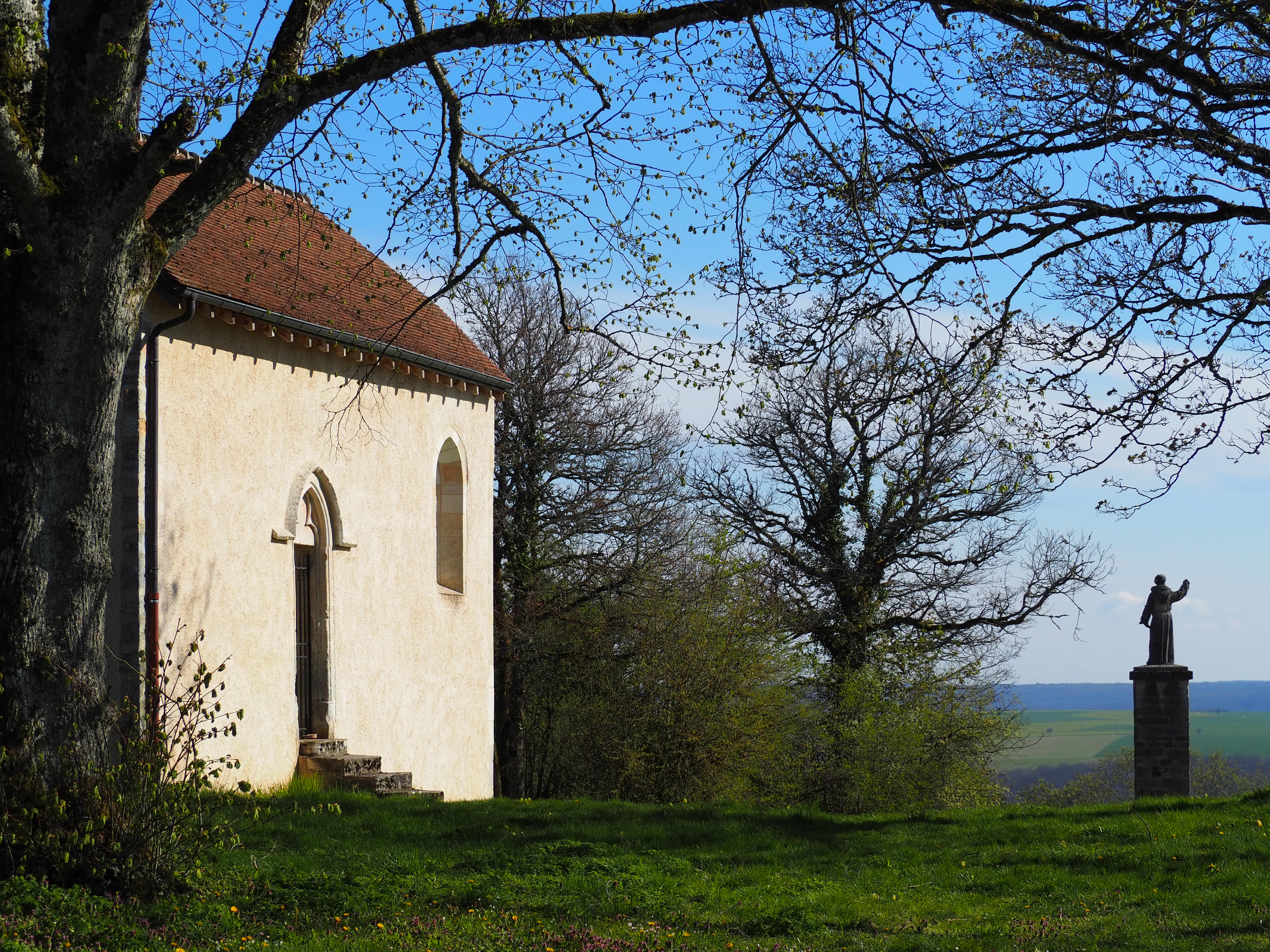 At the top of this hillock is the Saint-Siméon chapel. Saint-Simeon the Stylite is the patron saint of the village. His statue is oriented towards Prussia to protect the village from German invasions. In the past, the statue was inside the chapel and was taken out between the two world wars. Below, there is a large enclosed area that has been cleared, where the main part of the castle was located, of which nothing remains today. Two natural rock walls are located further down. This is the old gateway to the fortification of the platform. The cylindrical base of the guard tower can still be seen. At the top of this hillock is the chapel of Saint-Siméon. It is not known whether it was spared during the destruction of 1602 or rebuilt between 1602 and 1750. This chapel fell into ruin and was restored in November 2001 by the commune.