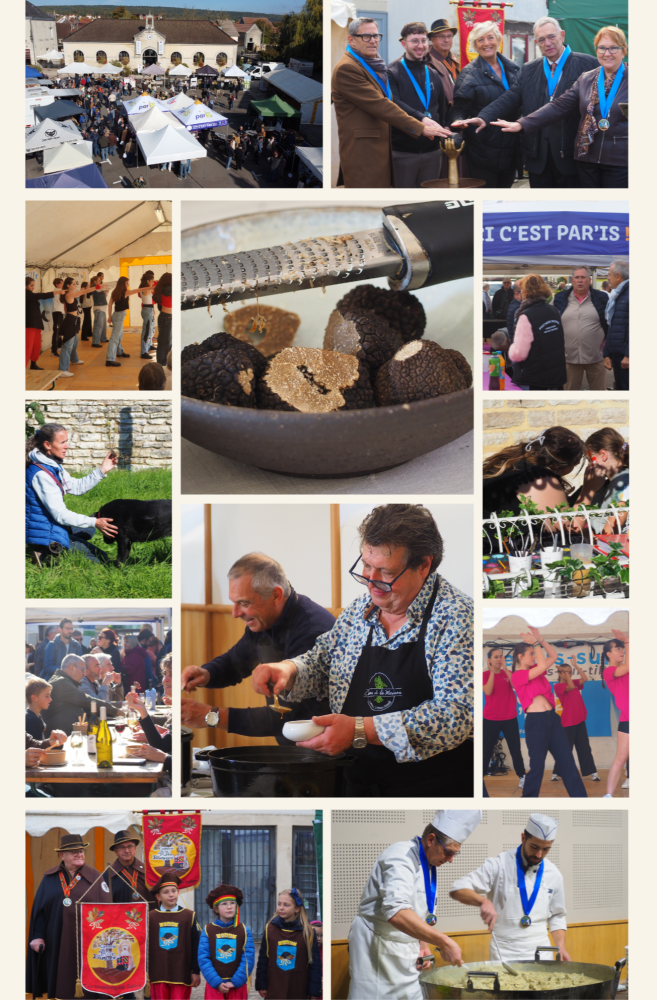 Organisée par l’Office de tourisme des vallées de la Tille et de l’Ignon, cette journée gourmande et festive met à l’honneur la truffe de Bourgogne, produit emblématique de notre terroir, par le biais de dégustations, de démonstrations et d’animations. Les visiteurs de cette vingtième édition ont été nombreux à profiter des animations qui ont rythmé la journée : marché aux truffes fraîches, intronisations de la Confrérie de la Truffe de Bourgogne, démonstrations de cavage avec un chien truffier, démonstrations de danse, marché gourmand… Tout était réuni pour éveiller les sens ! La dégustation vin-truffe, le menu à la truffe proposé par l’Union commerciale Par’Is (nouveauté 2025) et la traditionnelle omelette géante de la Confrérie de la truffe de Bourgogne ont fait l’unanimité et régalé les gourmets ! La journée s’est clôturée tout en musique avec le concert du groupe Roue Libre. Rendez-vous en octobre 2026 pour la prochaine édition !