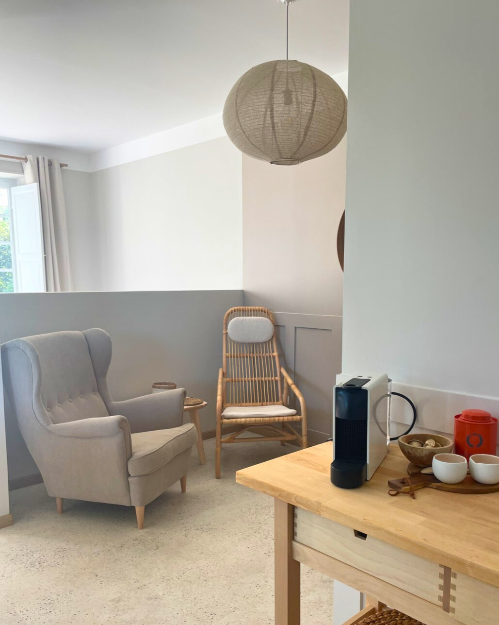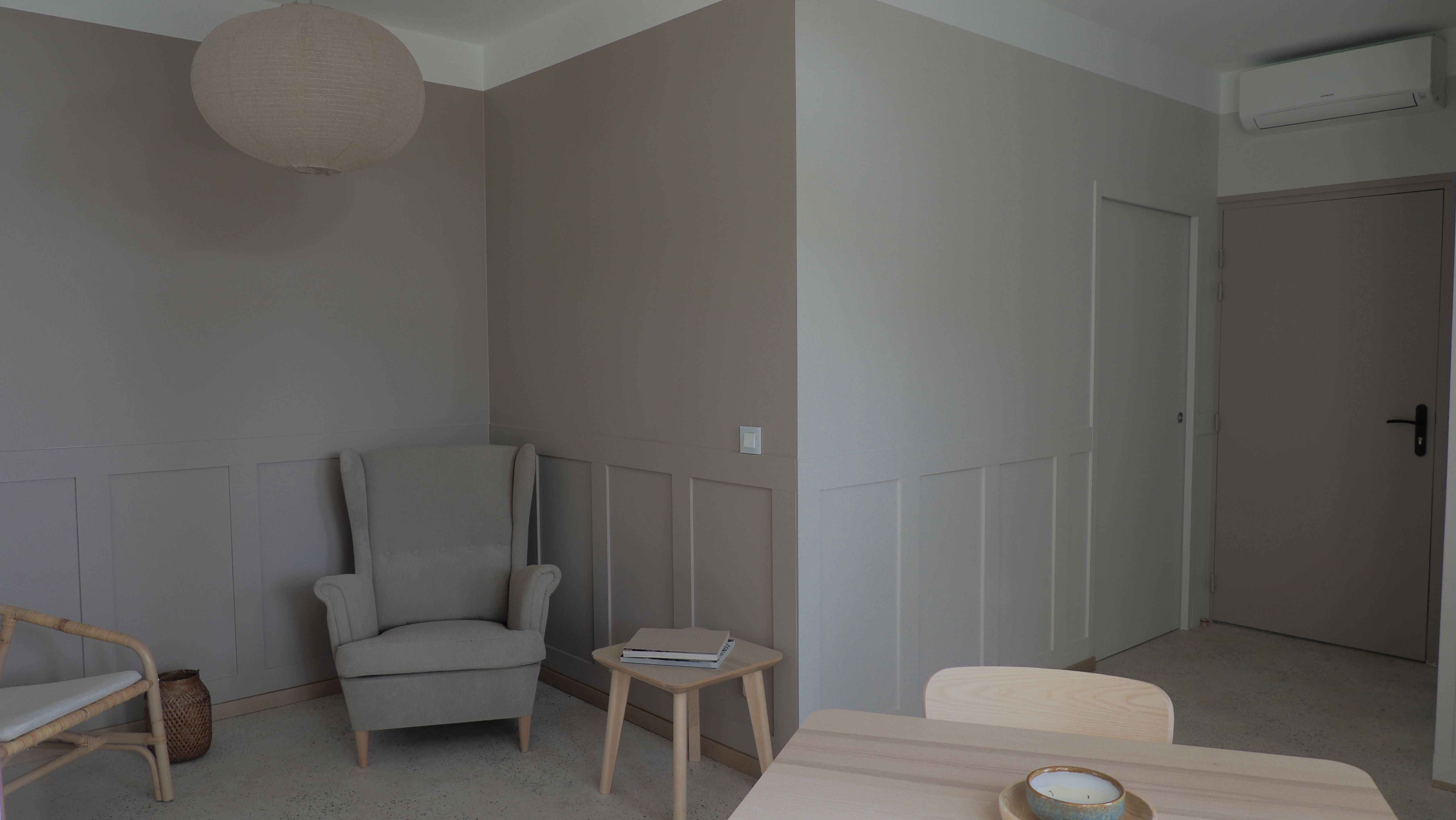 L’appartement a été conçu dans un esprit minimaliste, mêlant authenticité et modernité. Entre matériaux naturels et lignes épurées, chaque élément a été soigneusement choisi pour raconter une histoire. Les couleurs douces et l’agencement fonctionnel créent une ambiance apaisante, propice à la détente et à la déconnexion.