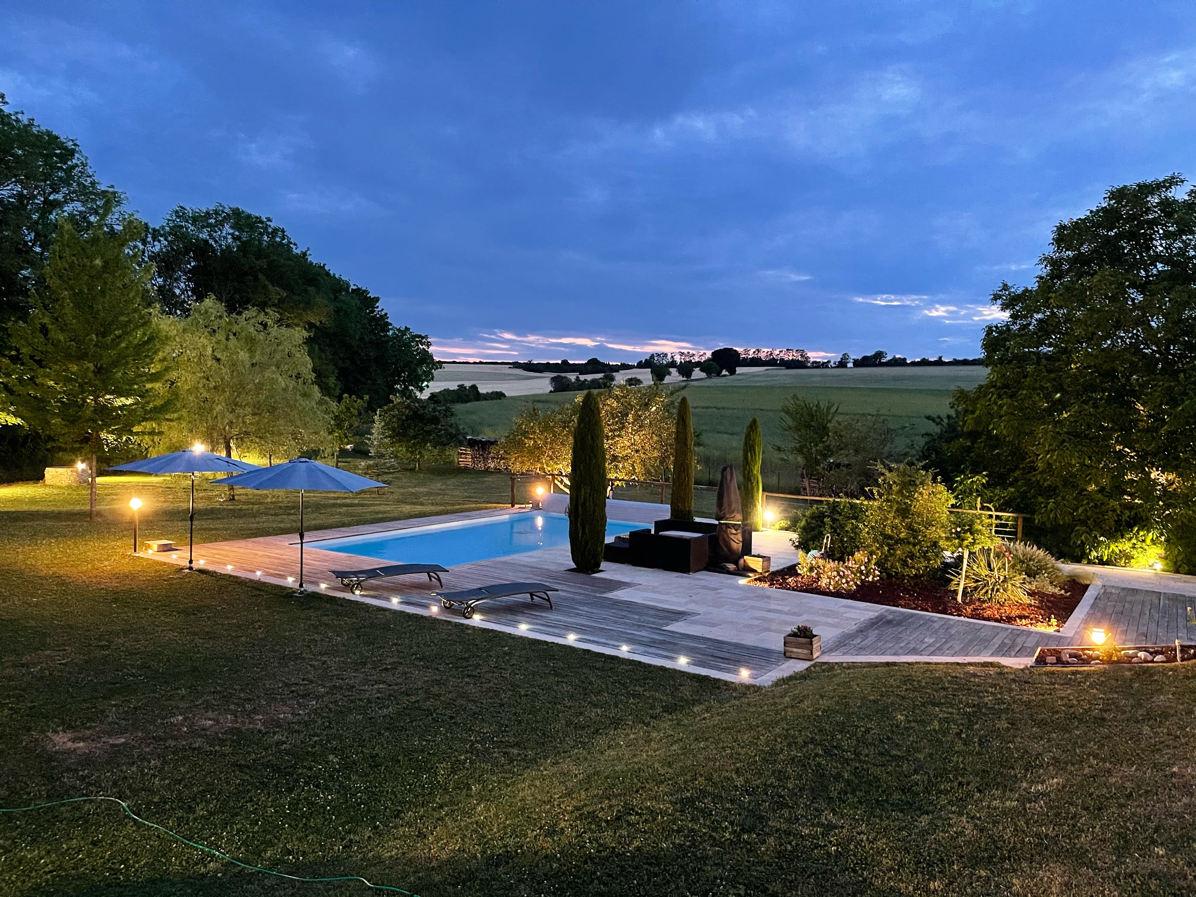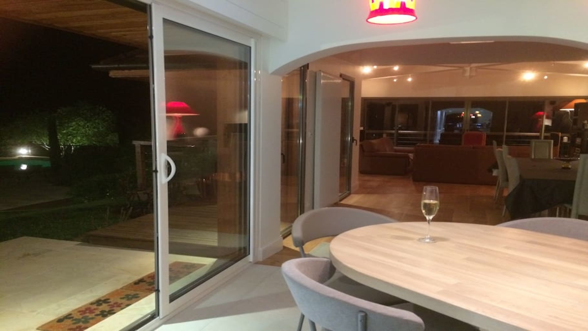 La maison vient d'être refaite à neuf. 5 chambres permettent d'héberger 10 adultes et 2 enfants (lits superposés). La piscine privée (10mx5m) est ouverte du 1er mai au 15 septembre, elle est chauffée et bénéficie d'une bâche aux normes de sécurité. Une formation à la sécurité de la piscine sera faite à l'arrivée. Une grande plage en bois et pierre permet d'en profiter pleinement l'été.