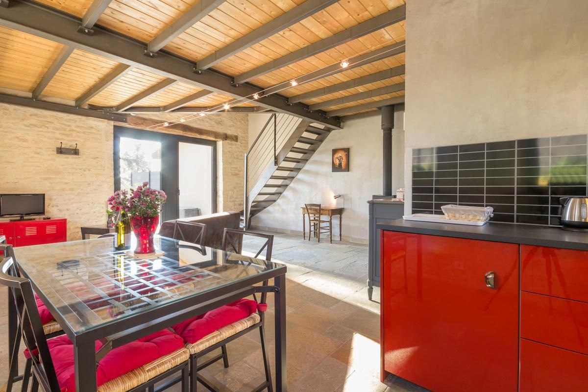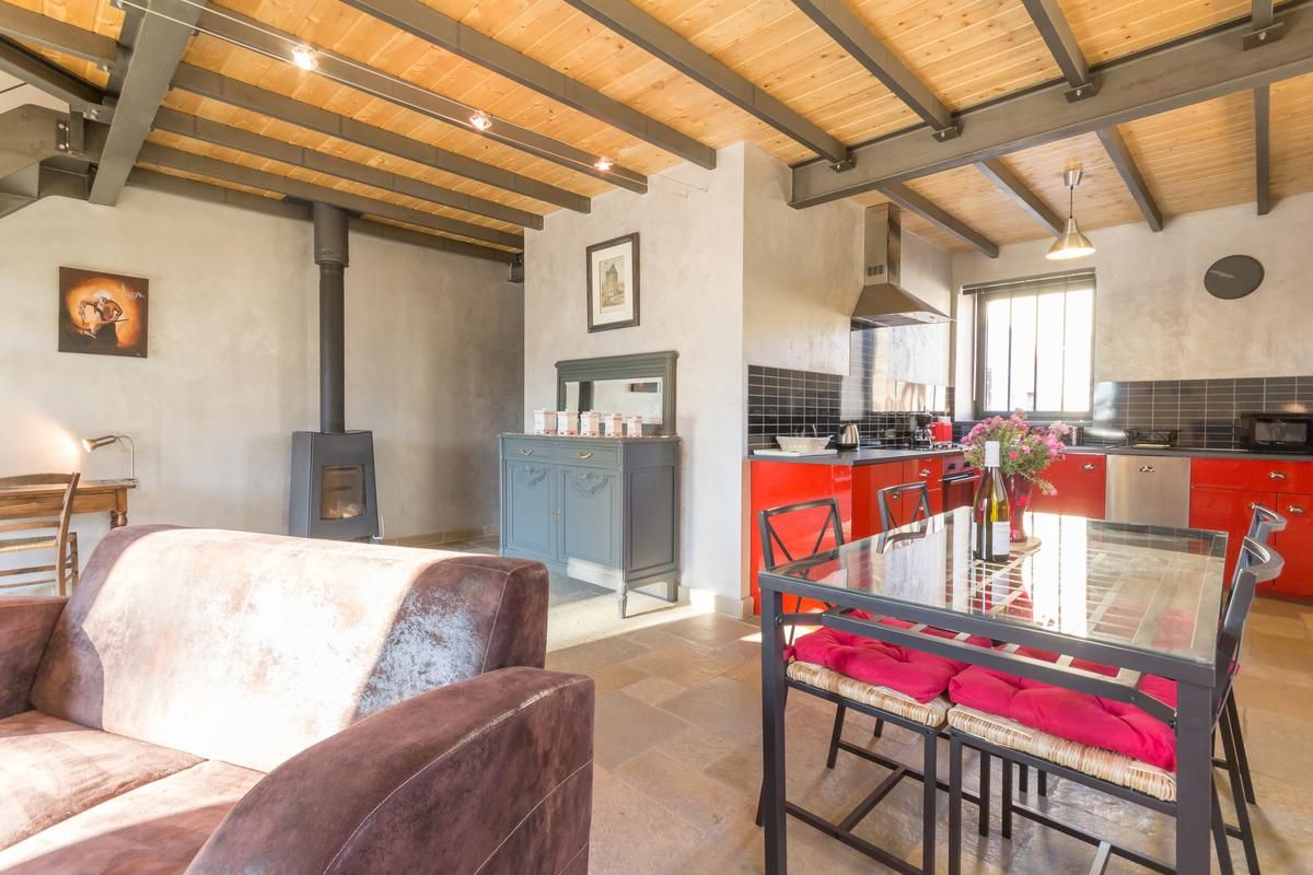 Situé au centre du village et aménagé dans une ancienne forge, gîte mitoyen et rénové avec goût en alliant le charme de la pierre, du bois et du métal. Rez-de-chaussée : grand espace ouvert avec cuisine intégrée (petit frigo avec bac congélateur), salle à manger et salon. Salle d'eau avec douche à l'italienne et WC séparé. A l'étage : une belle chambre (1 lit 160 et 1 lit 90), un second WC et une mezzanine offrant un couchage simple supplémentaire. Terrasse privative fermée et parking commun. Gîte mitoyen avec un autre gîte (21G814 pour 5 personnes).