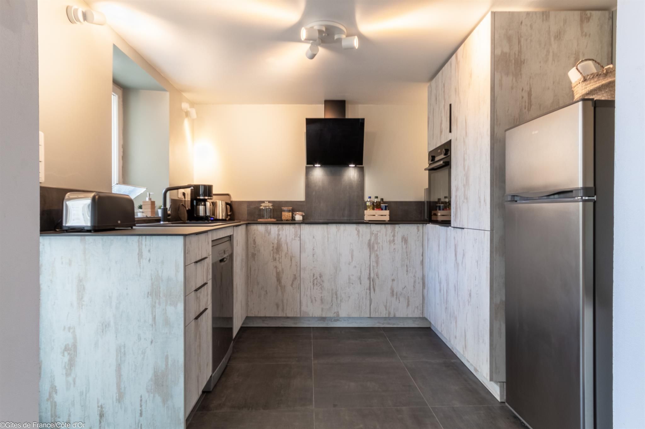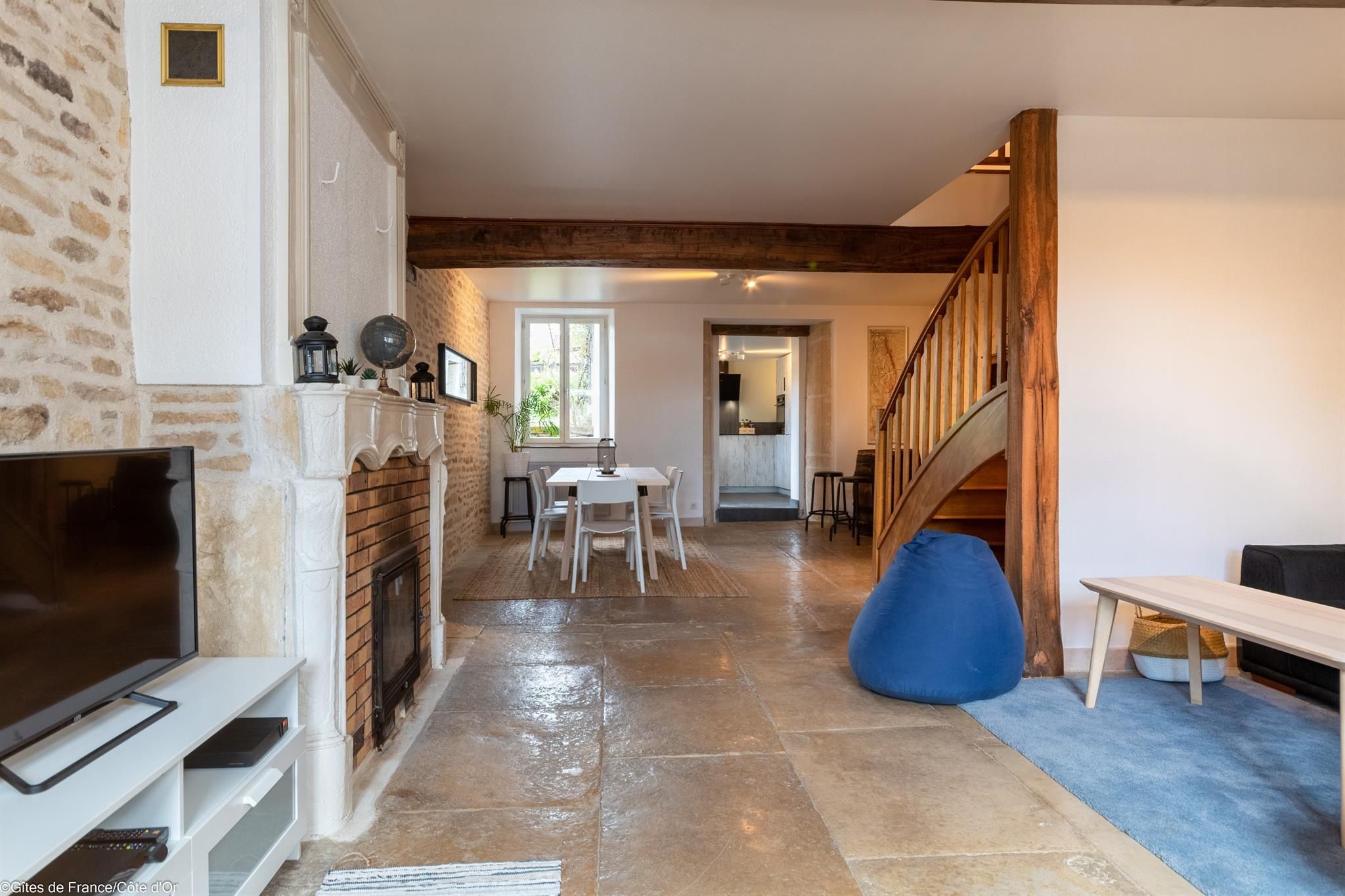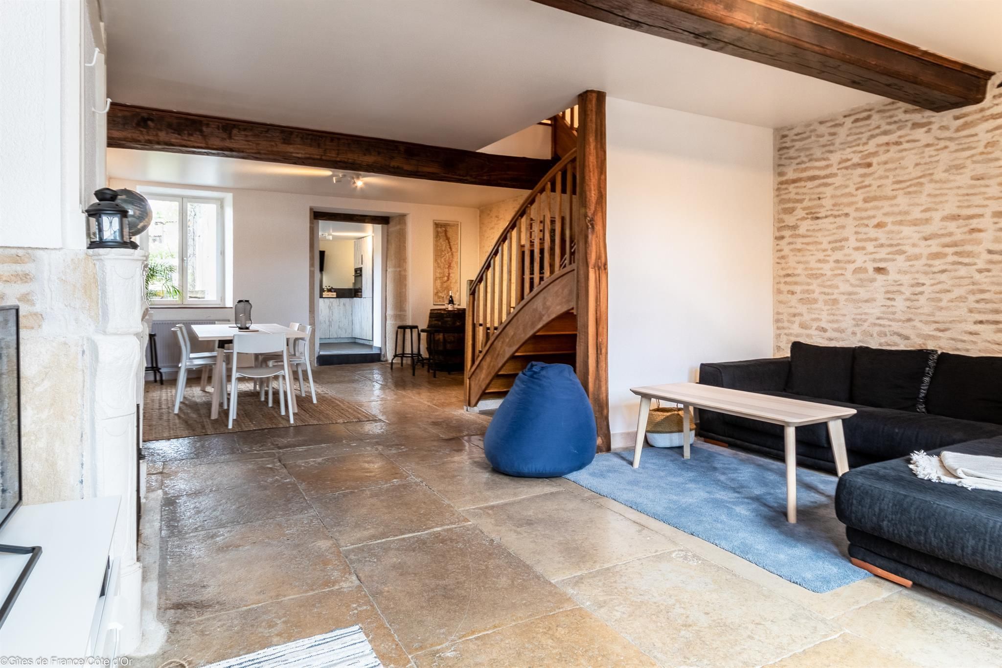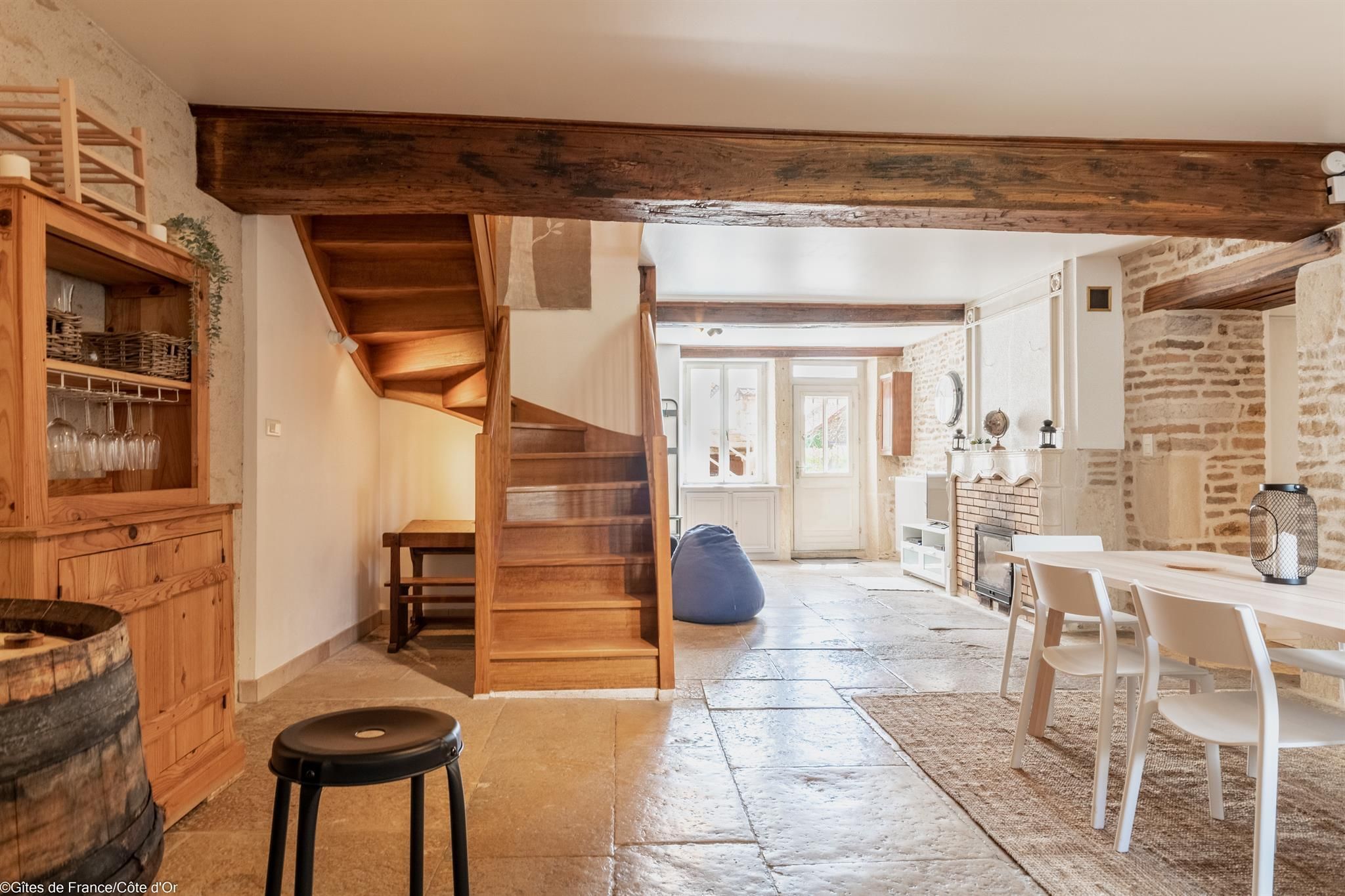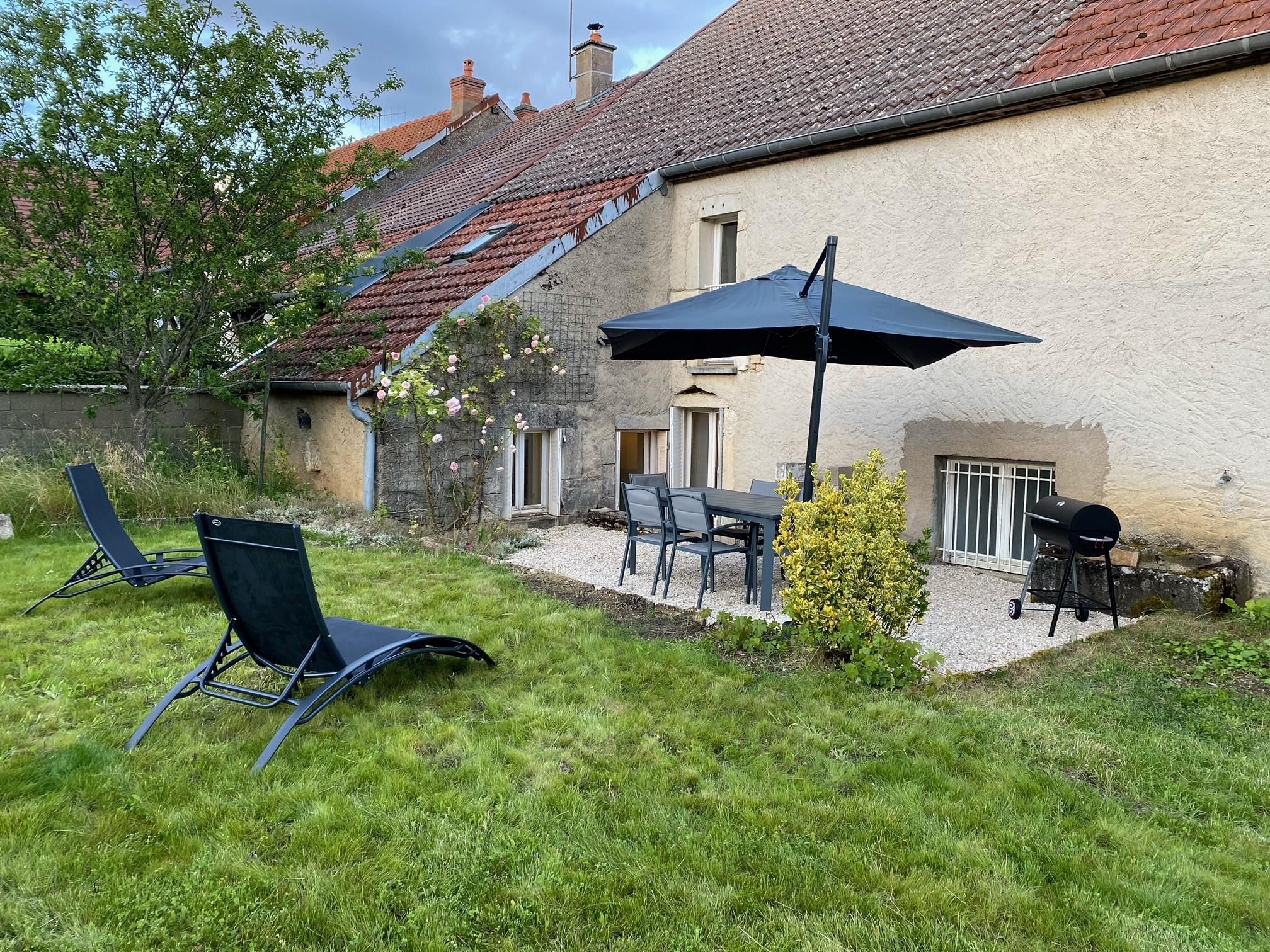 Au coeur d'un petit village à 10 minutes des portes de Dijon, la Maison de Juliette est une bâtisse rénovée, datant de 1850, avec pierres apparentes, dalles de Bourgogne et poutres.