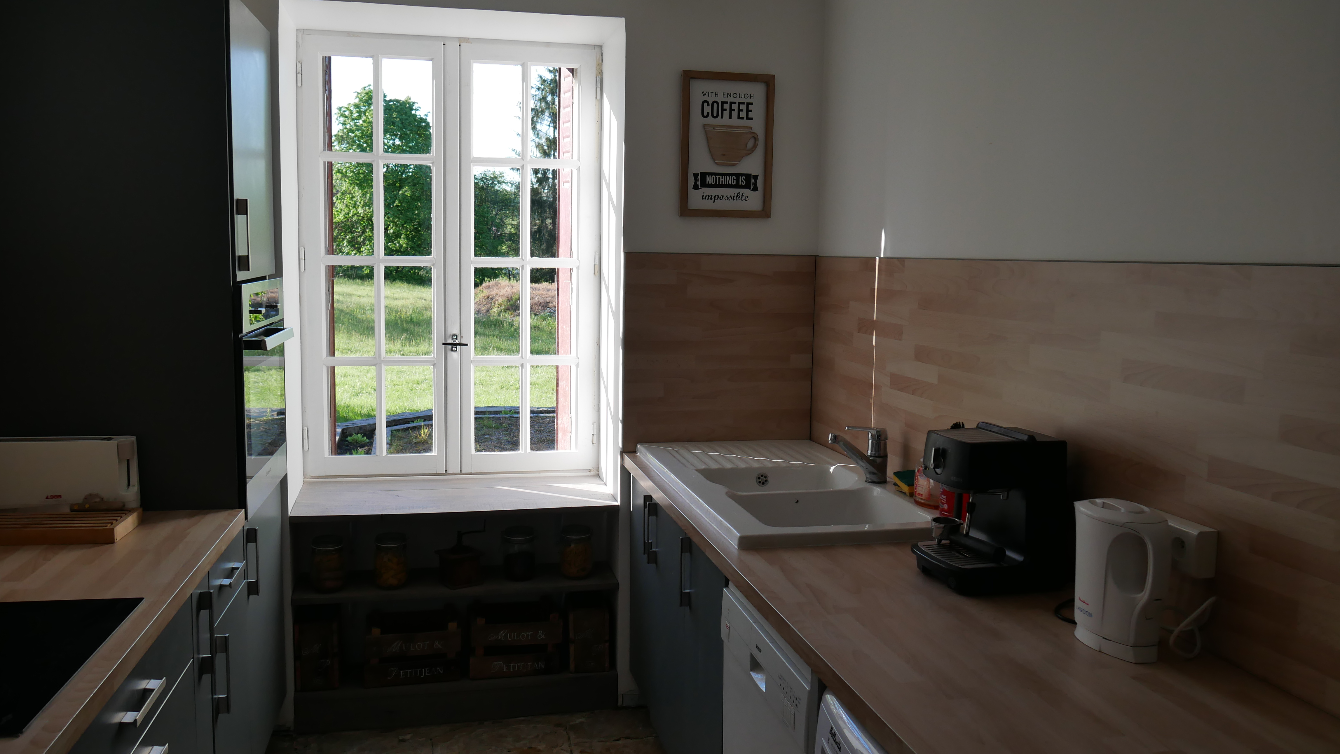 Le logement est composé de deux espaces: au rez-de-chaussée: Cuisine, et grand salon / salle à manger avec poêle à bois, télé et wifi.
